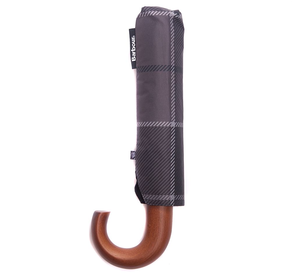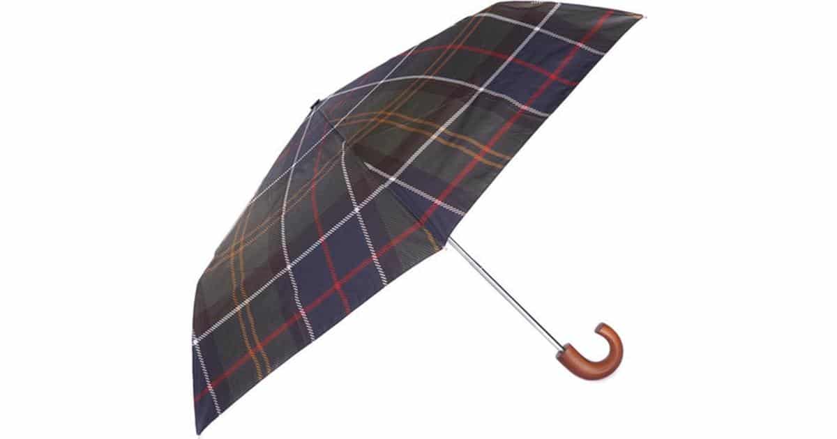 En smart mini paraply fra engelske Barbour, Paraplyen er med Barbours klassiske grønne tartan der er kendetegnet for Barbour. En praktisk paraply til de våde dage.
