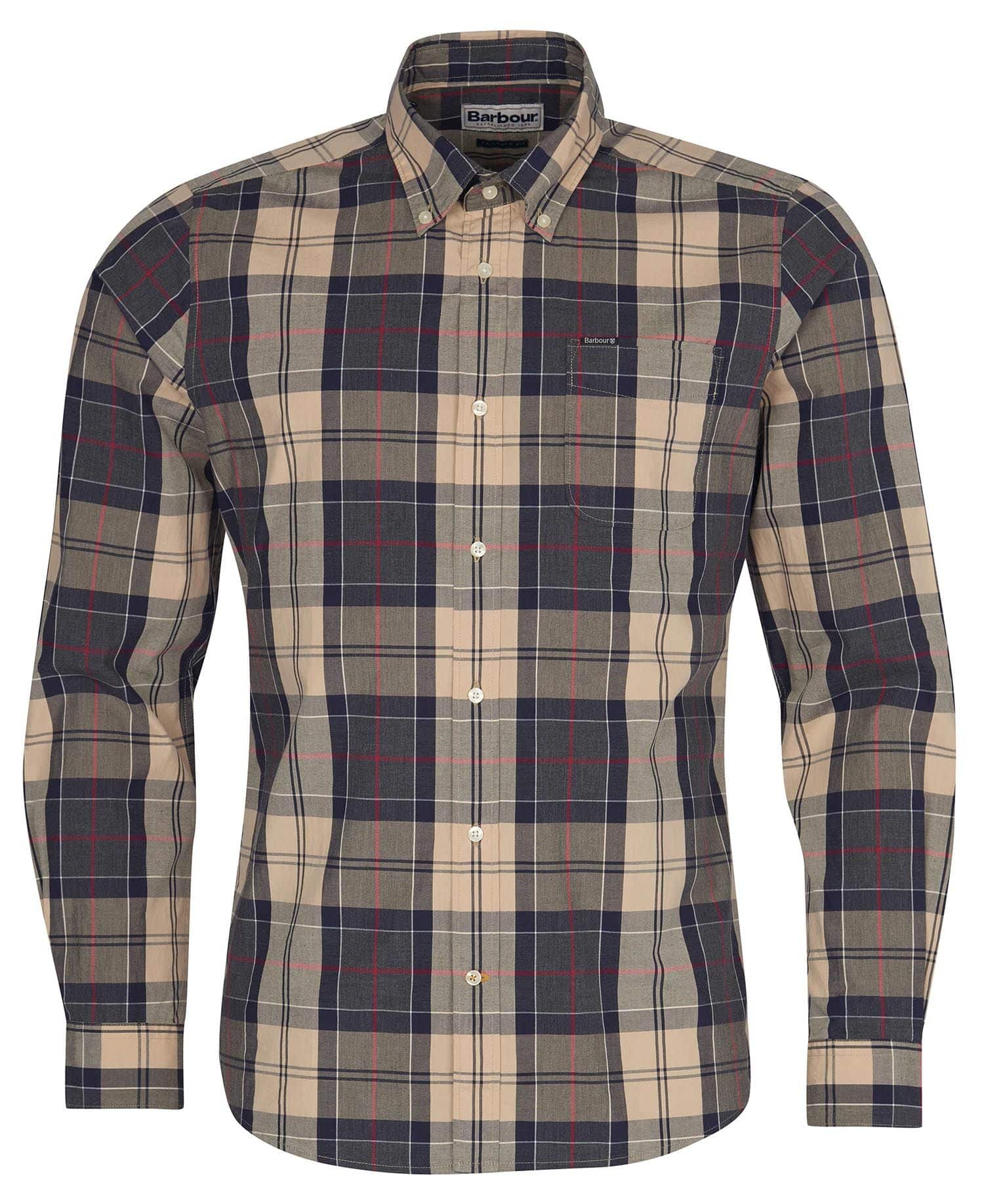 Smart nyhed fra engelske Barbour, denne skjorte er i 100% ren bomuld, i Barbours klassiske sandwood klan tern. Modellen er en tailored fit så den ikke er alt for stor i størrelsen. En smart skjorte til Barbour jakken.