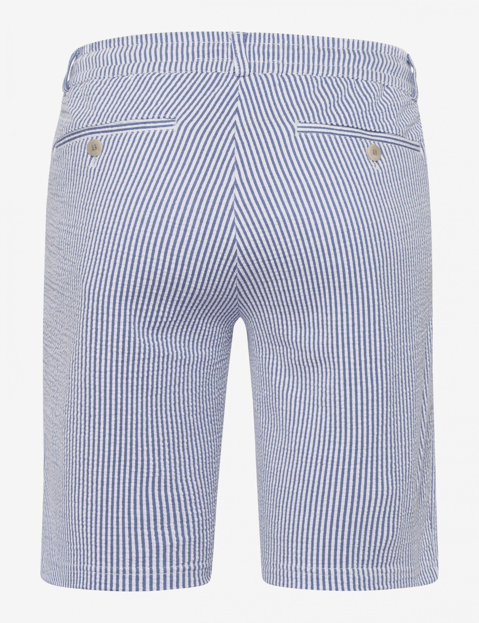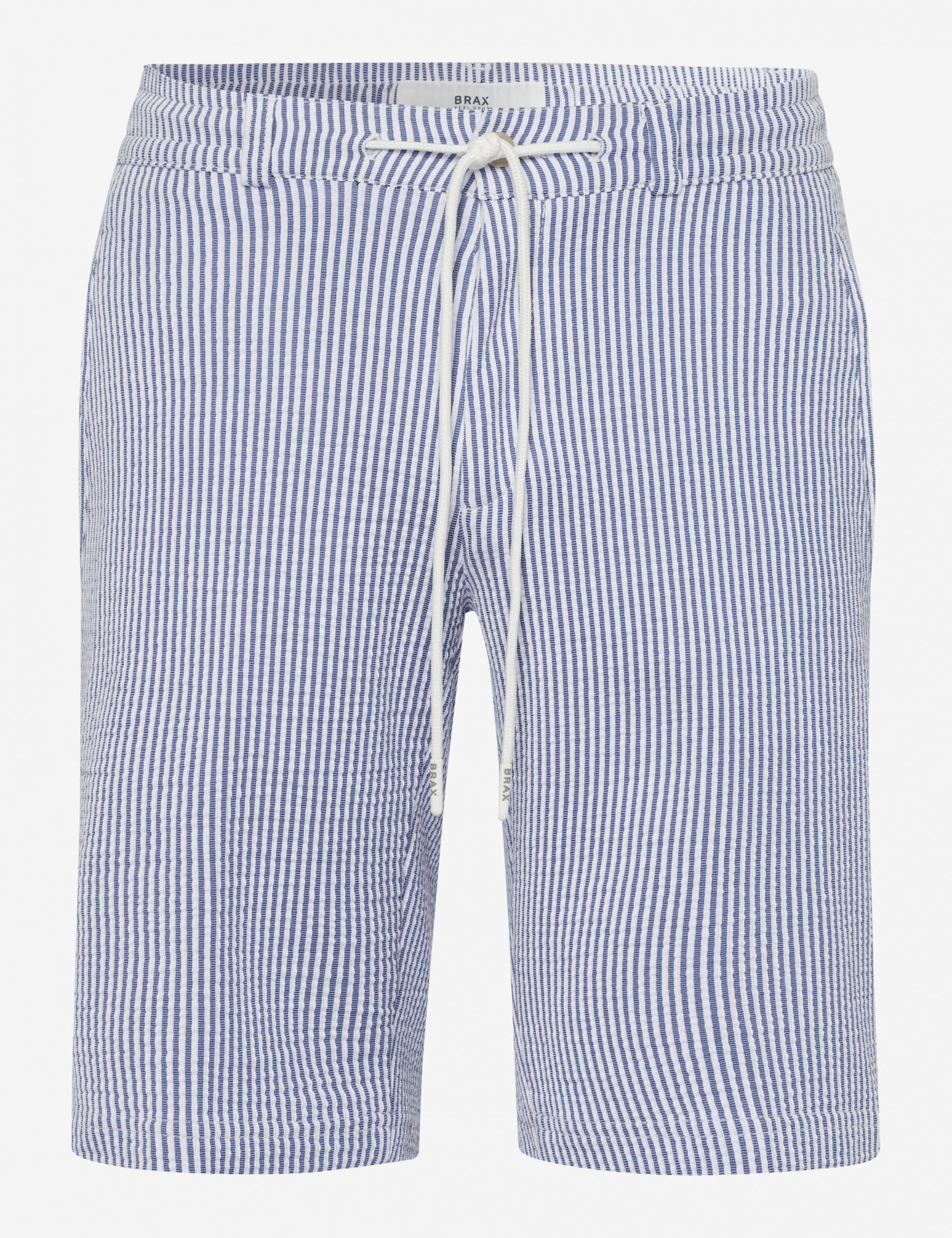 En sommernyhed fra tyske Brax, en lækker bæk og bølge bermuda med en flot kadetstribe. Kvaliteten er 63% Bomuld35% Polyester2% Elastan. Modellen er normal i størrelsen.