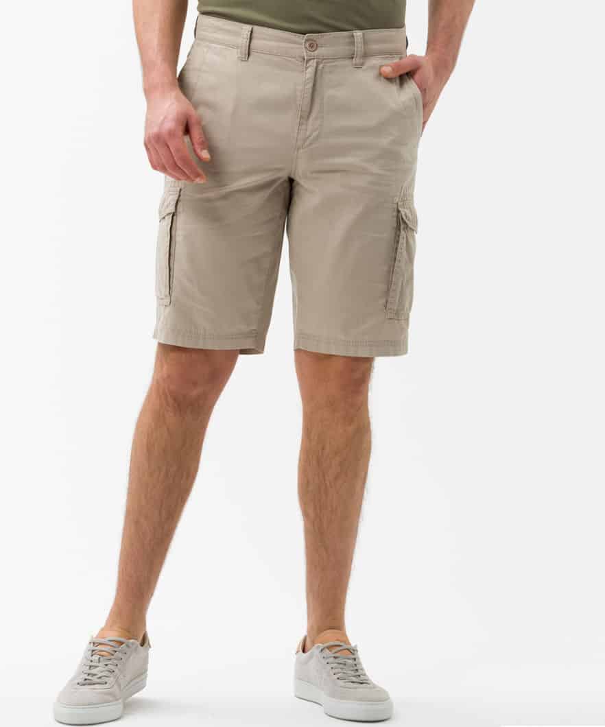Lækre shorts fra Brax i deres sædvanlige bløde bomuld. Disse shorts har to cargo lommer på lårene. Shortsene er normale i størrelsen og de er lavet af 100% bomuld. Et rigtig godt køb til en fornuftig pris.