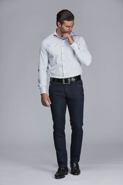 Lækker jeans fra Hansen & Jacob denne jeans har et silk touch så den virker meget blødere end en normal jeans. Farven er en deep blue så den passer godt til efteråret både til job og fritd.
