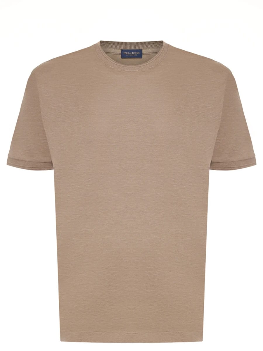 Sommernyhed fra italienske Paul & Shark er denne lækre t-shirt lavet af 62% silke og 38% bomuld, en super let t-shirt der  både kan bruges alene eller indenunder en blazer. Farven er en utrolig flot mokka der passer godt både til lyse og mærke bukser. Modellen er regular.