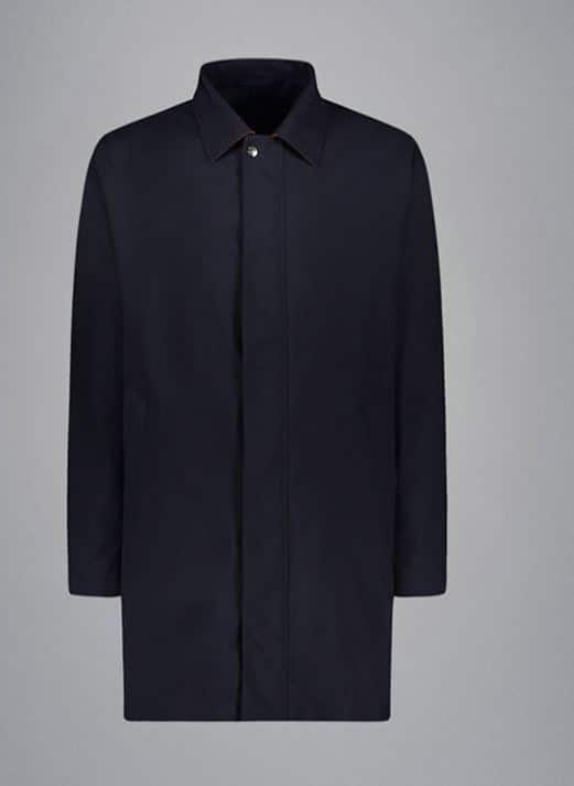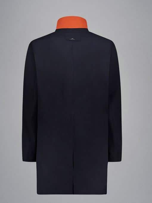 Her er en rigtig lækker sommerfrakke fra italienske Paul & Shark frakken er lavet af Loro Piana rainsystem som gør at frakken er næsten vandtæt. Frakken er lavet af 85% uld og 15% silke. Frakken er mørkeblå med en kontrast på kraven i orange.  En lækker let frakke både til job og fritid.