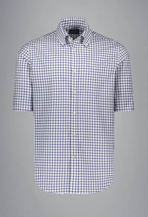 Smart nyhed fra italienske Paul & Shark er denne kortærmet skjorte i en flot kobolt tern. Modellen er en regular, så det er en rummelig skjorte. Kvaliteten er ren bomuld.