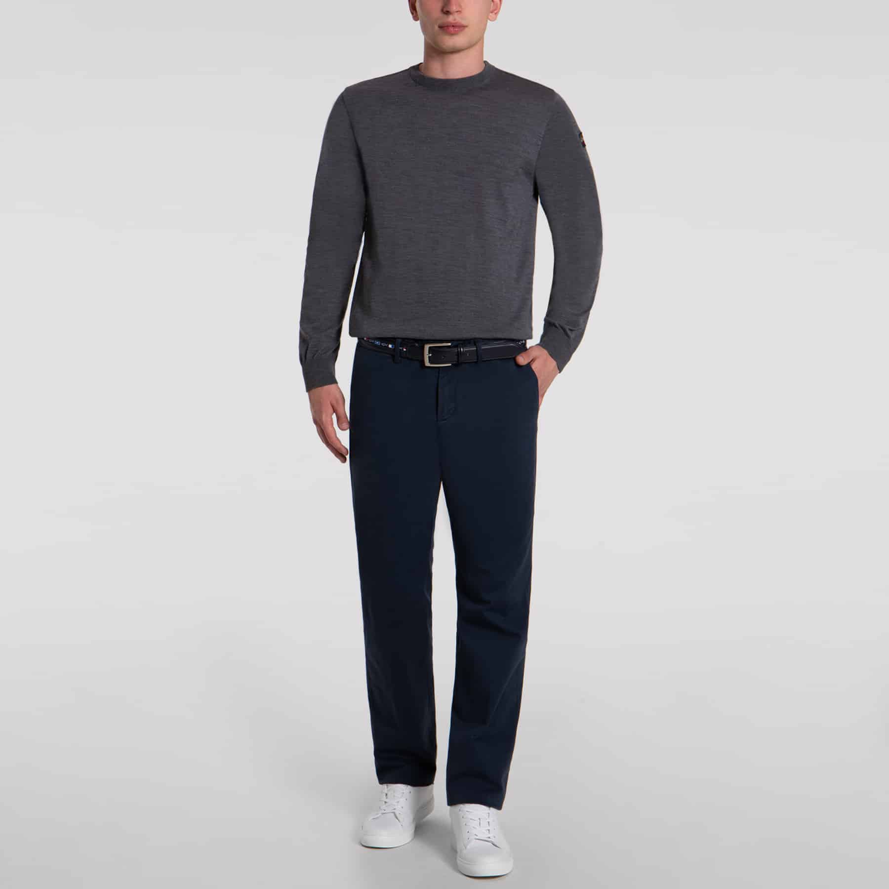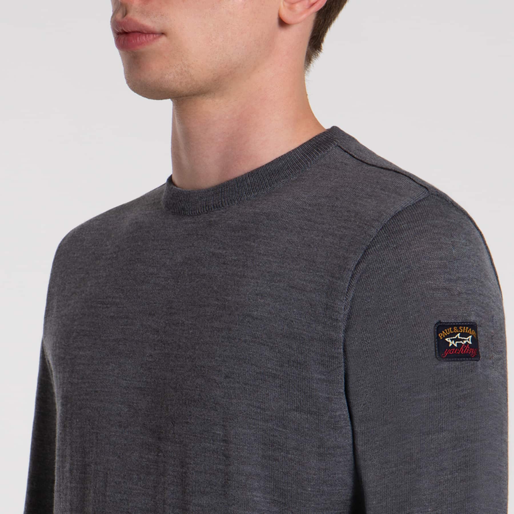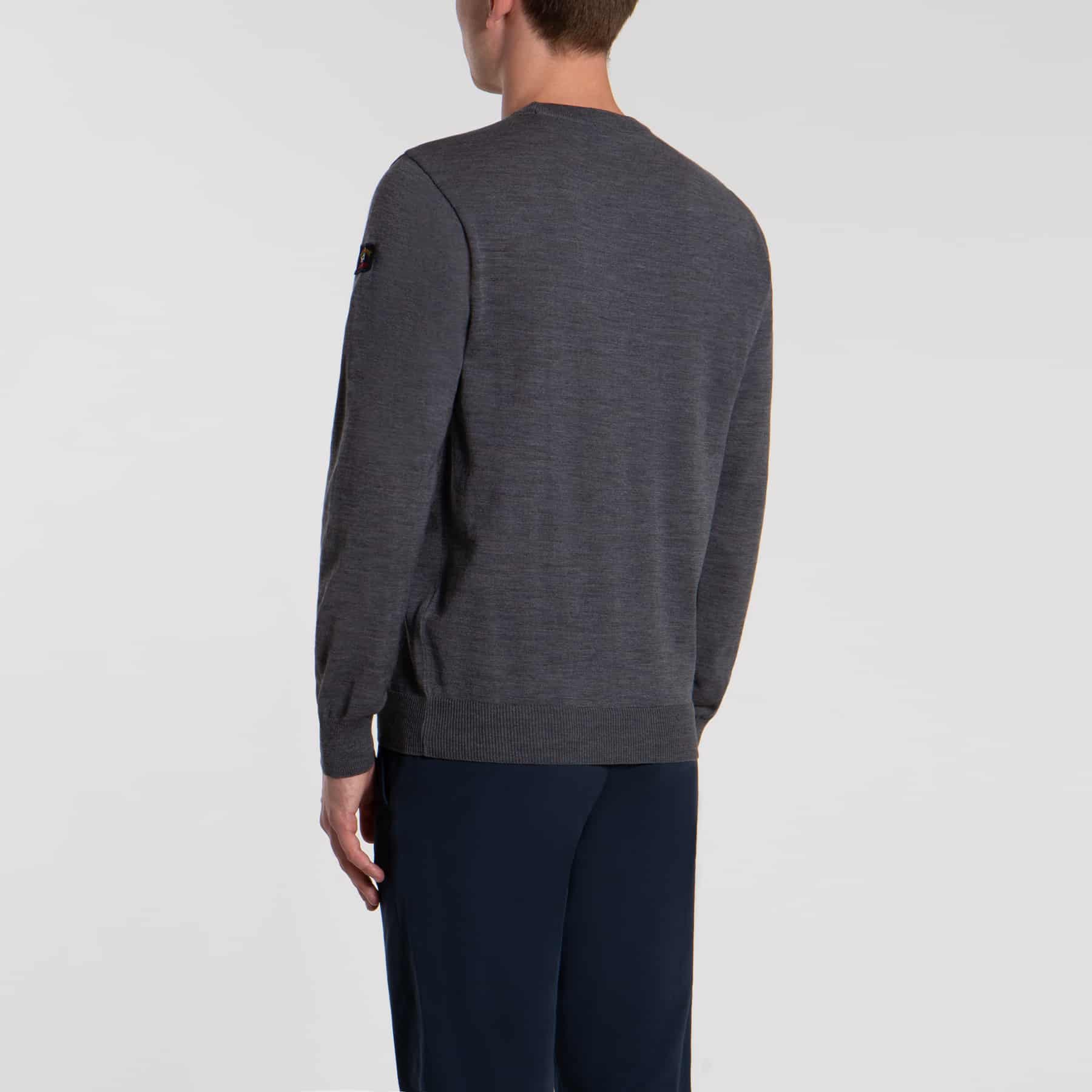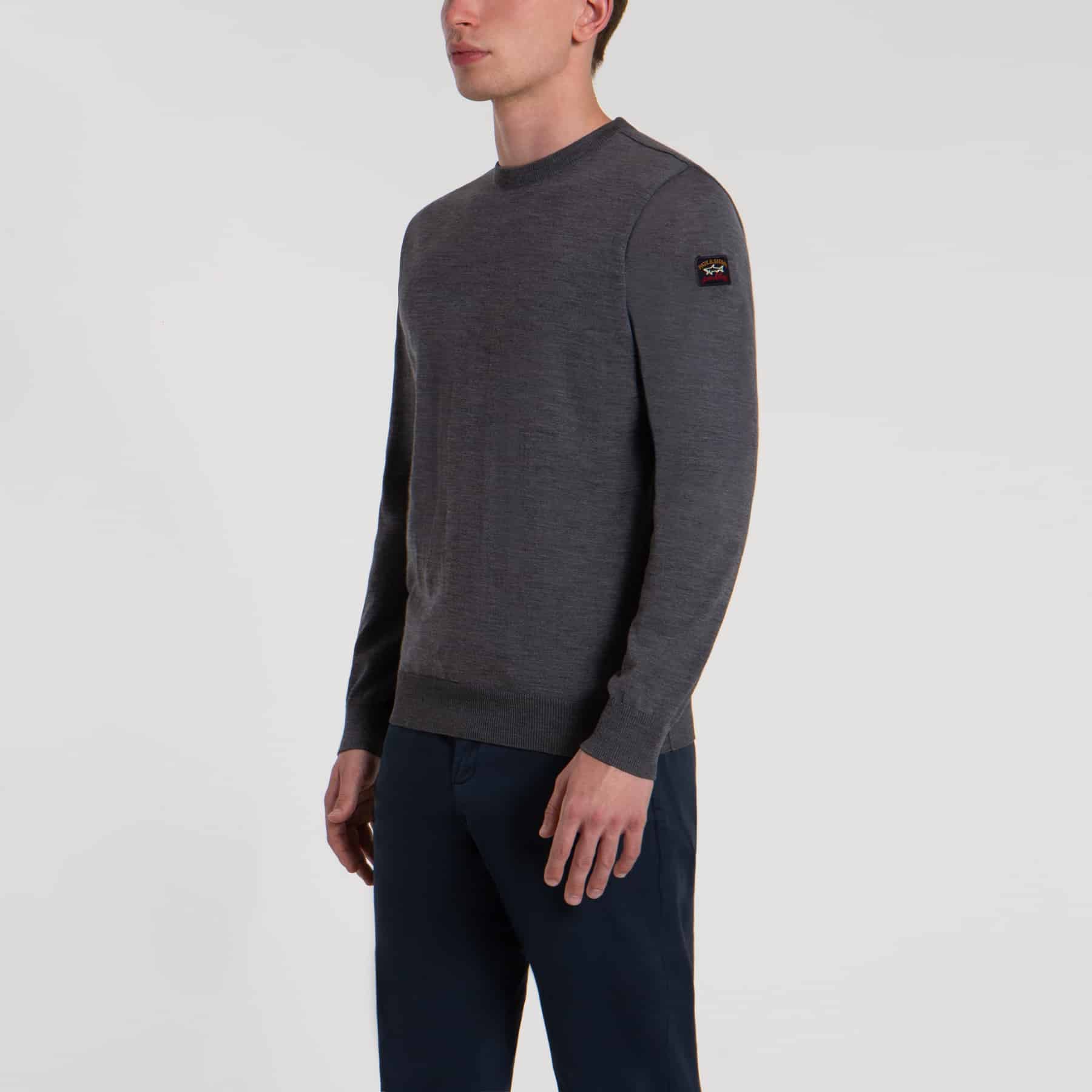 Klassisk grå Paul & Shark pullover i deres kendte kvalitet som er utrolig slidstærk. Pulloveren er med rundhals og er i 100% ren merino uld. Pulloveren er made in Italy