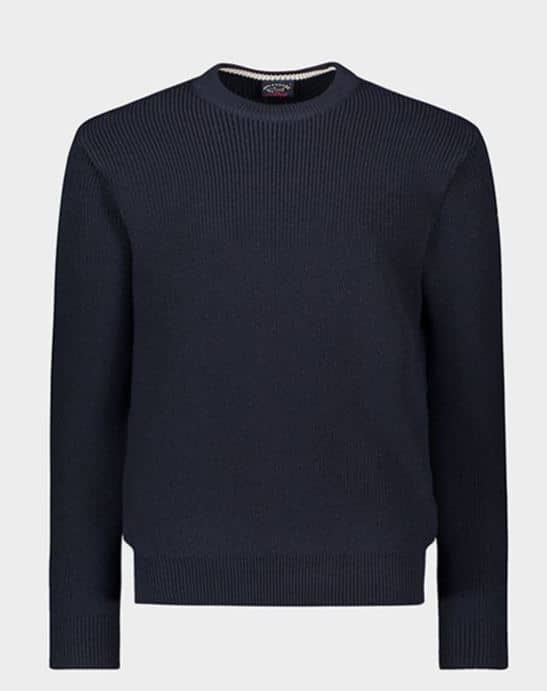 Smart navy ribbet pullover fra italienske Paul & Shark en super dejlig kraftig pullover til vinteren. Pulloveren er i ren ny uld og er lavet af Paul & Sharks eksklusive uld.