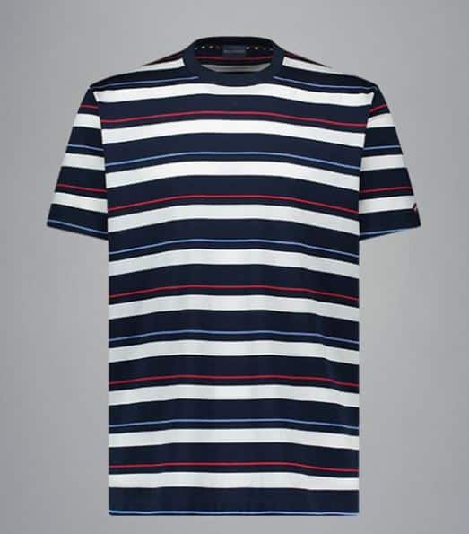 Nyhed fra italienske Paul & Shark er denne flotte stribede t-shirt i en lækker pima cotton, Flot til både shorts eller have inde under en jakke om sommeren. Kvaliteten er 100% ren bomuld.