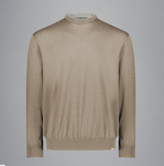 Lækker nyhed fra italienske Paul & Shark, er denne super lette pullover lavet af de bedste garner fra Paul & Shark, kvaliteten er 70% ren uld og 30% silke, der gør at pulloveren får en lethed der er behagelig at have på kroppen. Modellen er regular fit så den passer alle. Farven er varm beige